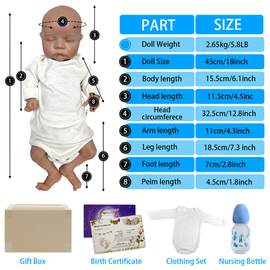 18 Inch Levi 3D Painted Full Silicone Bebe Reborn Doll