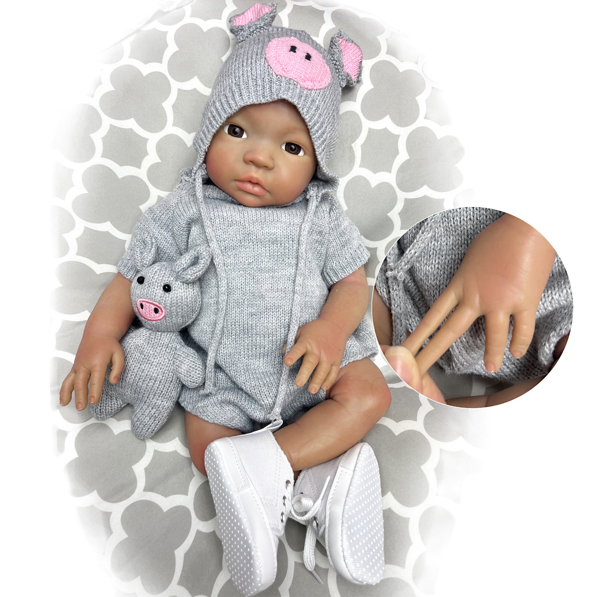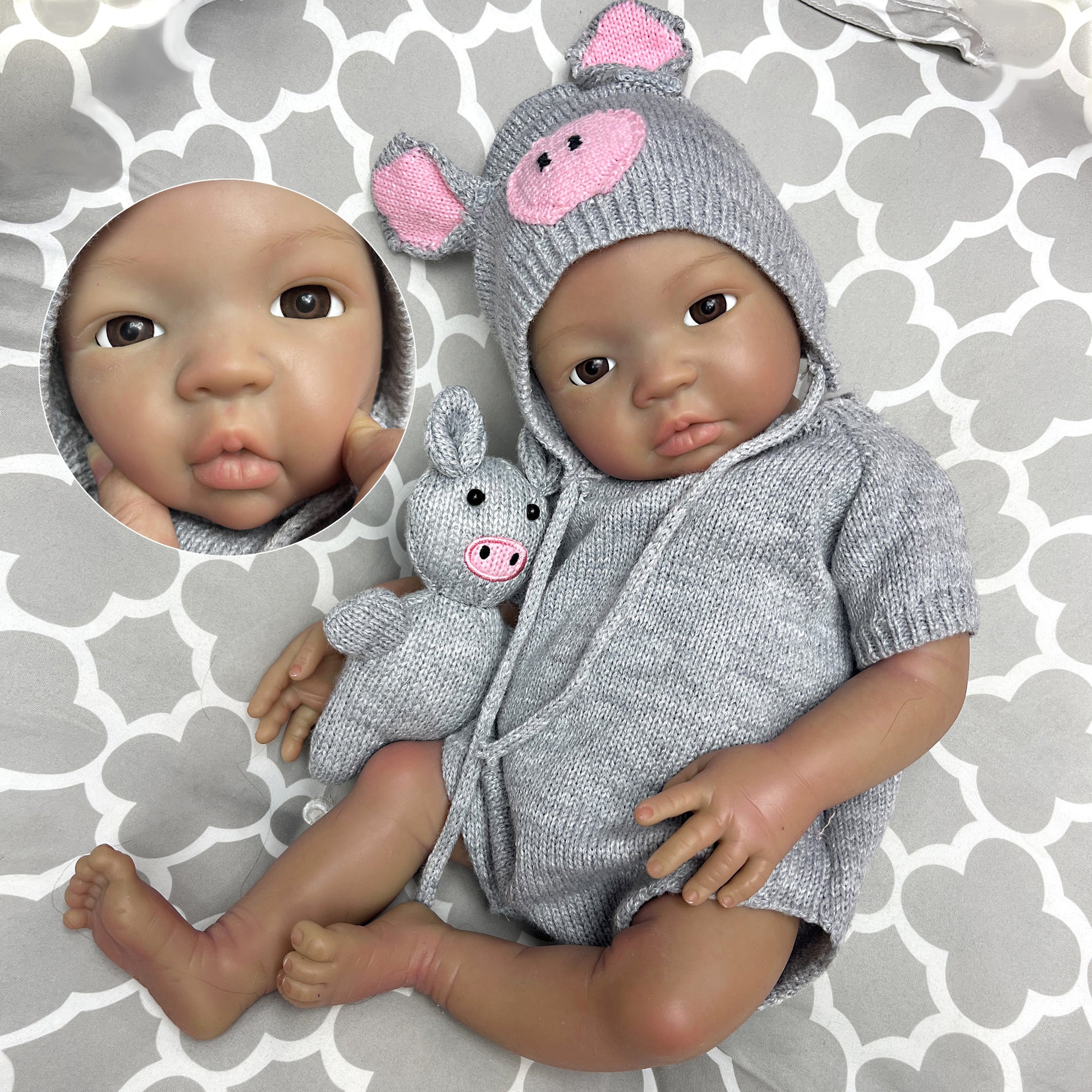 45cm/18Inch Dark Skin Solid Silicone Reborn Girl With Artist Oil Painted Skin, Whole Body Soft Platinum Silicone Newborn Baby Doll Can Bath, Reborn Doll Toy