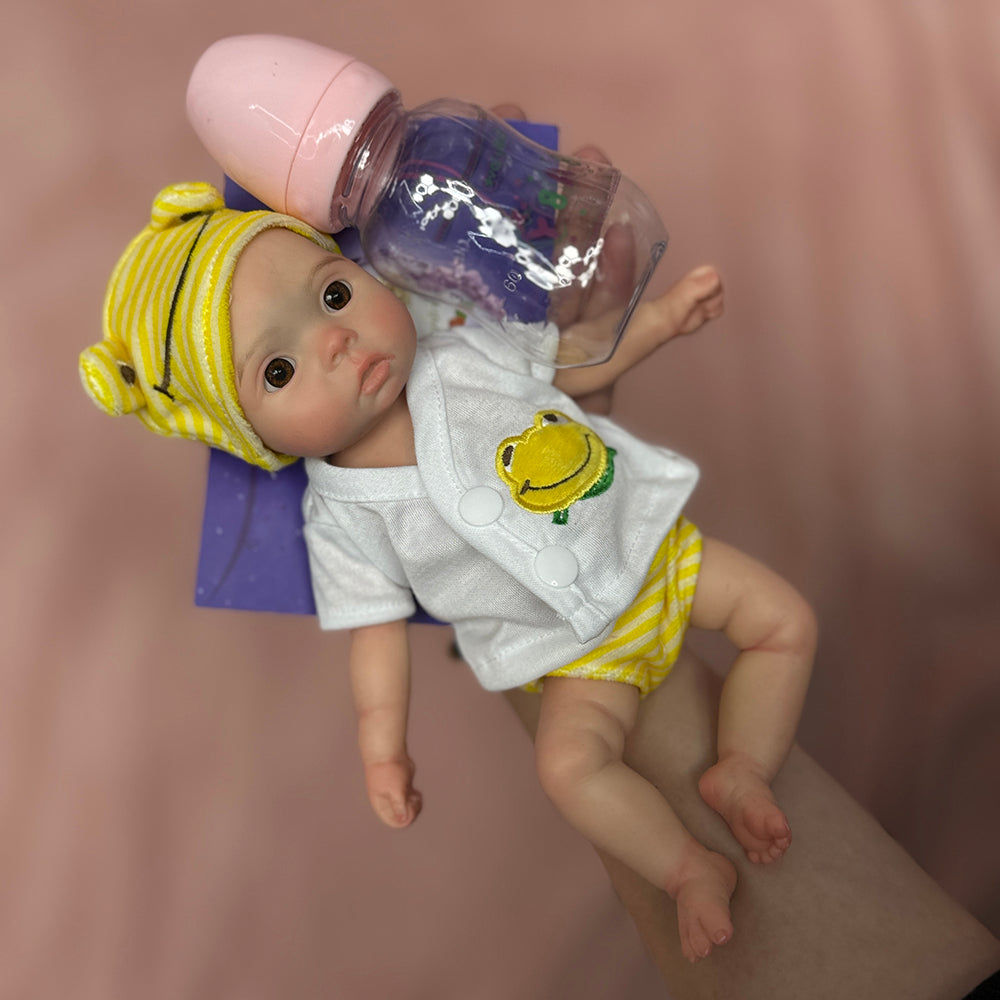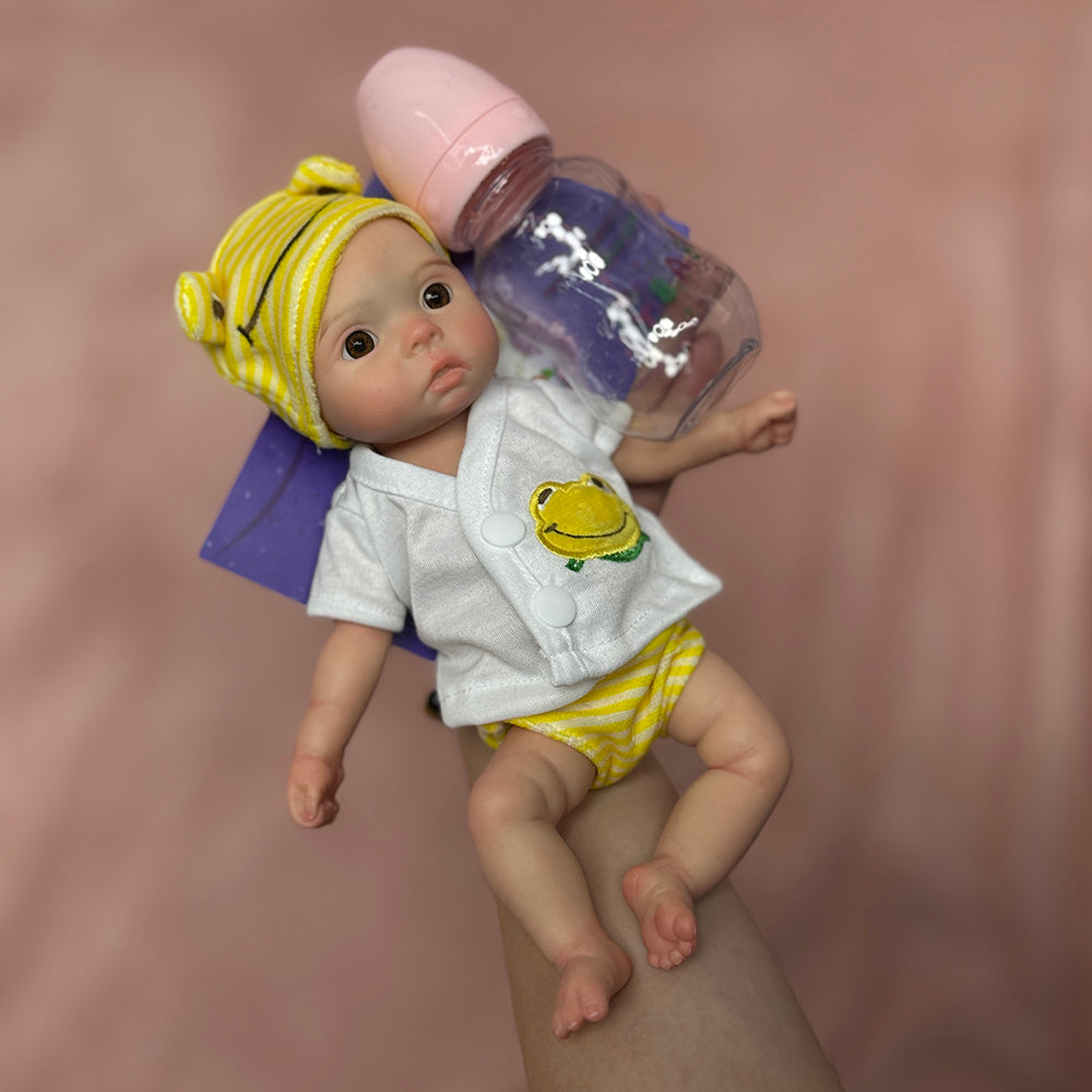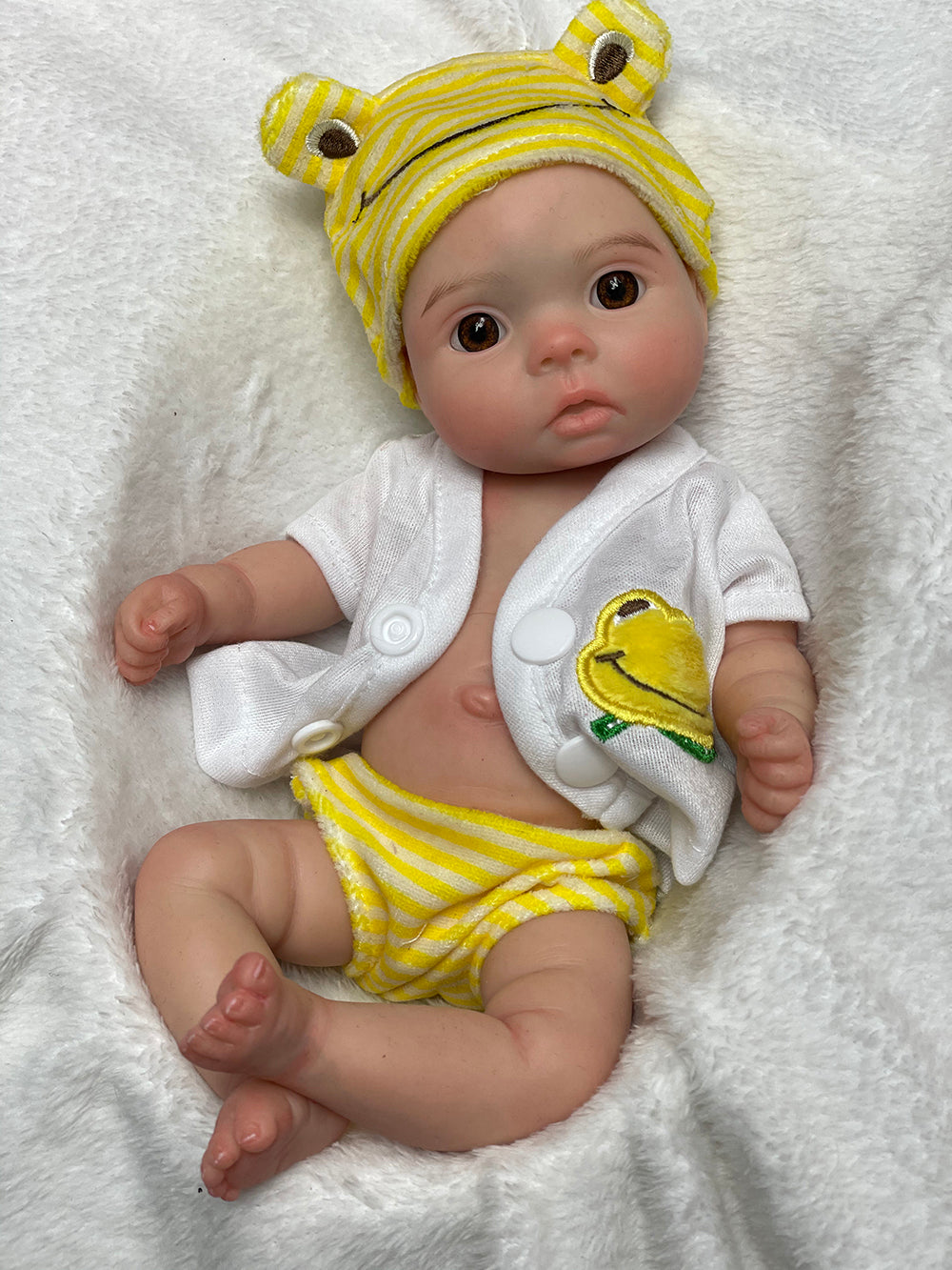 11 Inch Delicate Reborn Doll Full Solid Silicone With Soft Touch Feeling Lifelike Toddler Baby