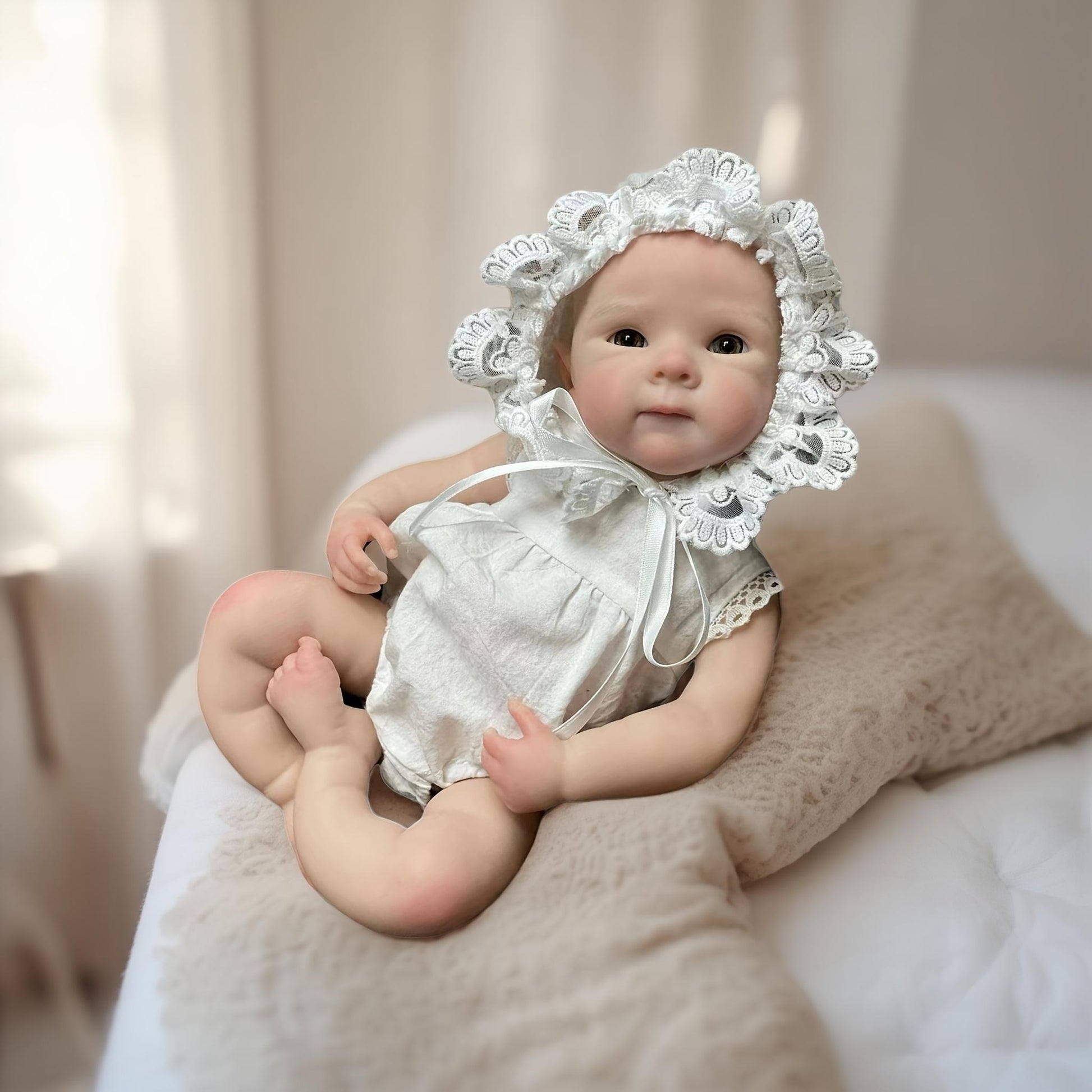 13Inch/33cm Adorable Reborn Silicone Girl Doll Bettie Can Open Mouth Whole Body Soft Solid Silicone Girl Handemade Painted Detailed Skin Newborn Baby Dolls With White Suit Best Gifts For Family