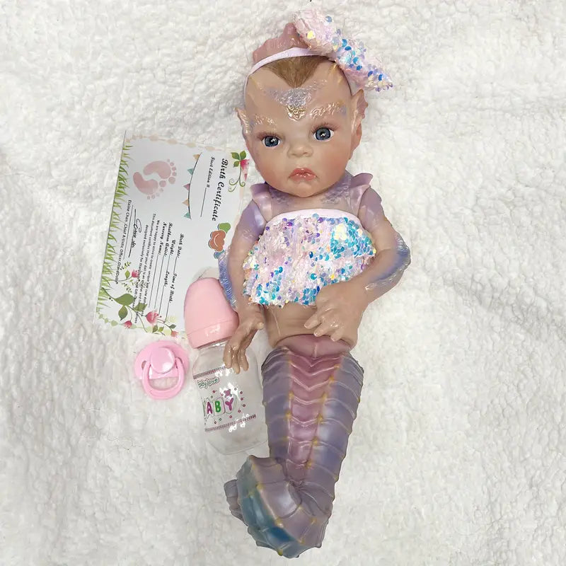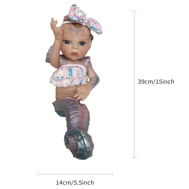 15.35inch Cuddly Reborn Mermaid Doll With Rooted Hair Handmade Lifelike Newborn Baby Doll Toy Bikini Outfits For Birthday Gift