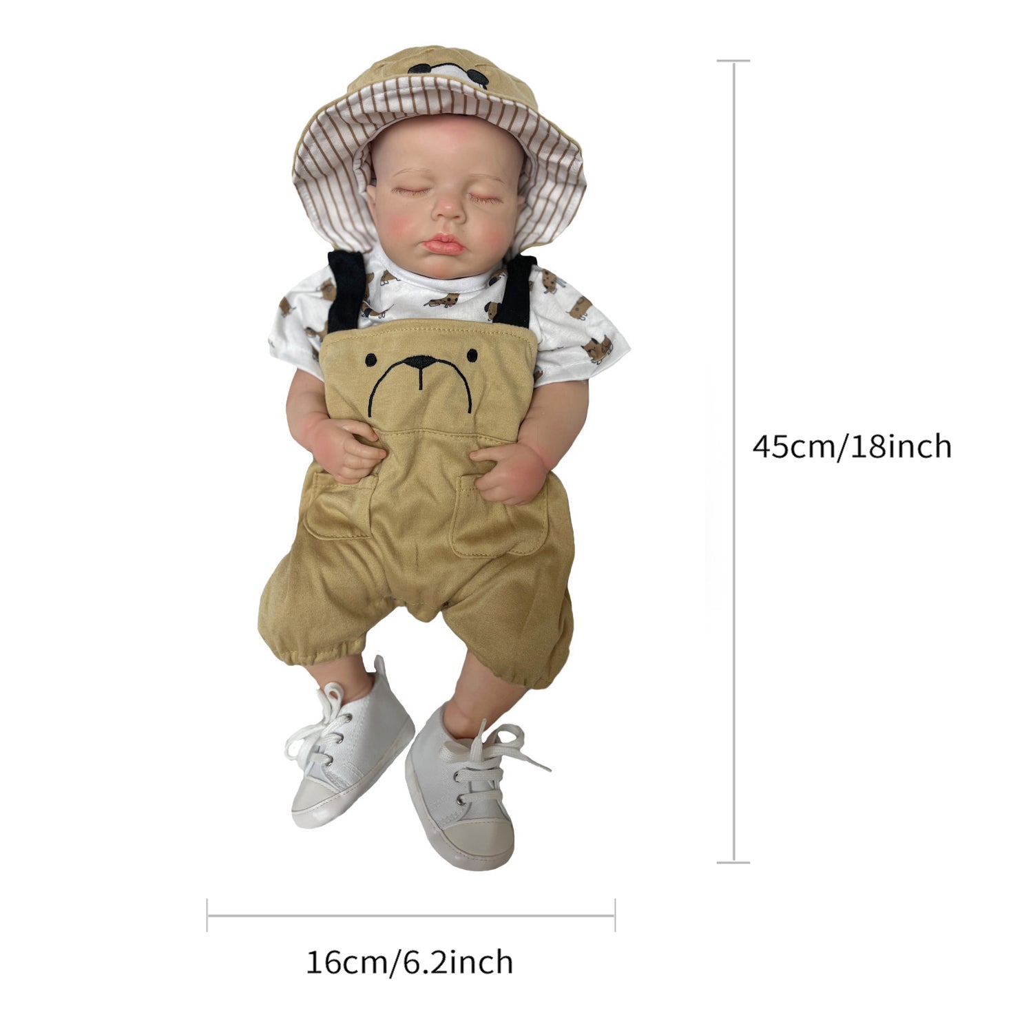 Baby size:Around 18 inches, 45cm. Due to different measurement methods, allowable error Weight:Doll Net weight is around2.7KG ️PACKAGE INCLUDES️ 1 x Solid Silicone Doll 1 x Bottle(Pink) 1 x Set of clothes 1 pair of shoes *Hand painted with Genesis heat set paints and completed. *Please Note: Silicone Dolls May Have Small Flaws, If You can't Accept them, Please Don't Buy It! *Super Soft Solid Silicone Doll, High Quality Gift.