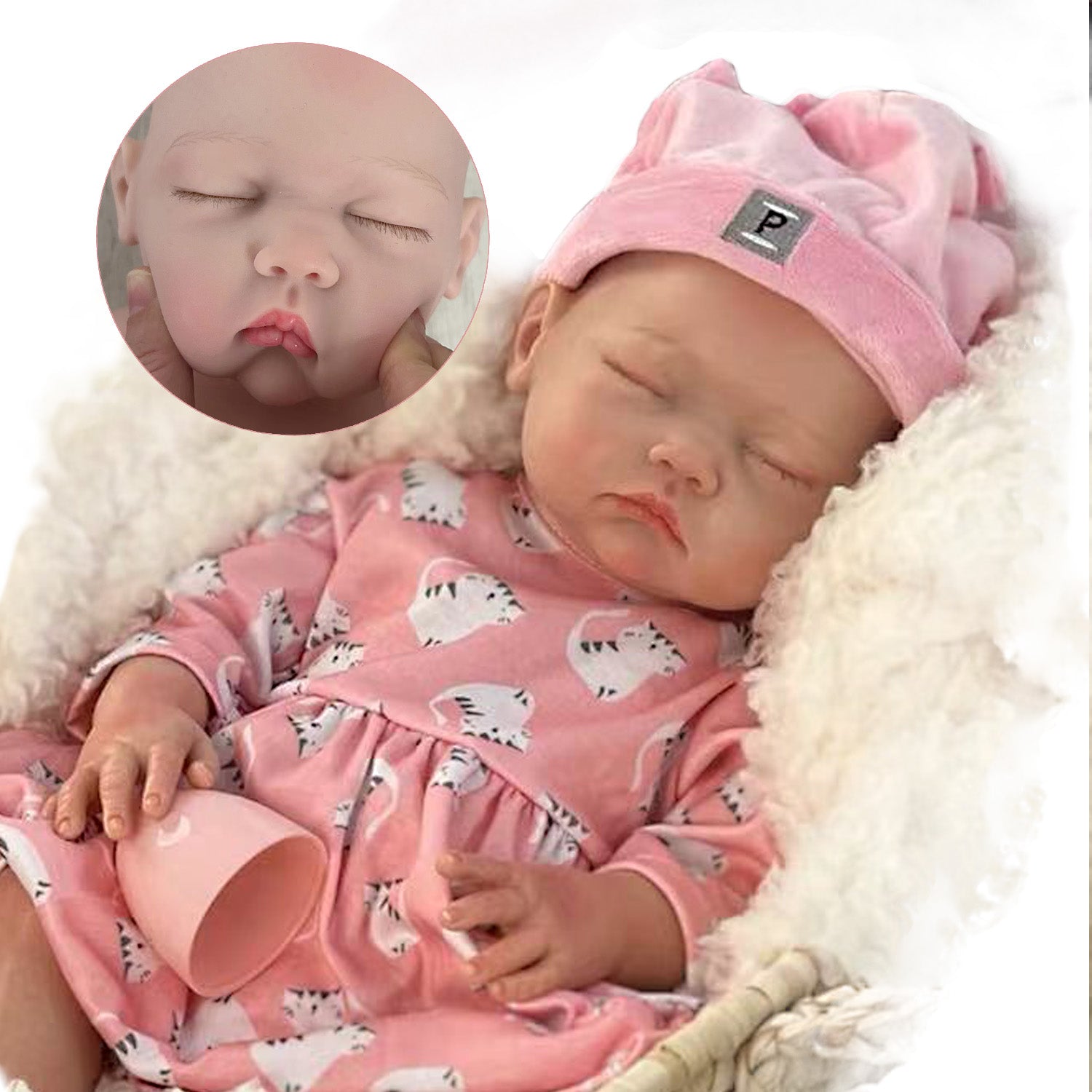 18inch Sleeping Girl Silicone Reborn Dolls Full Body Soft Solid Silicone Bebe Reborn Doll Artist Painting Baby Dolls For Family's Gift