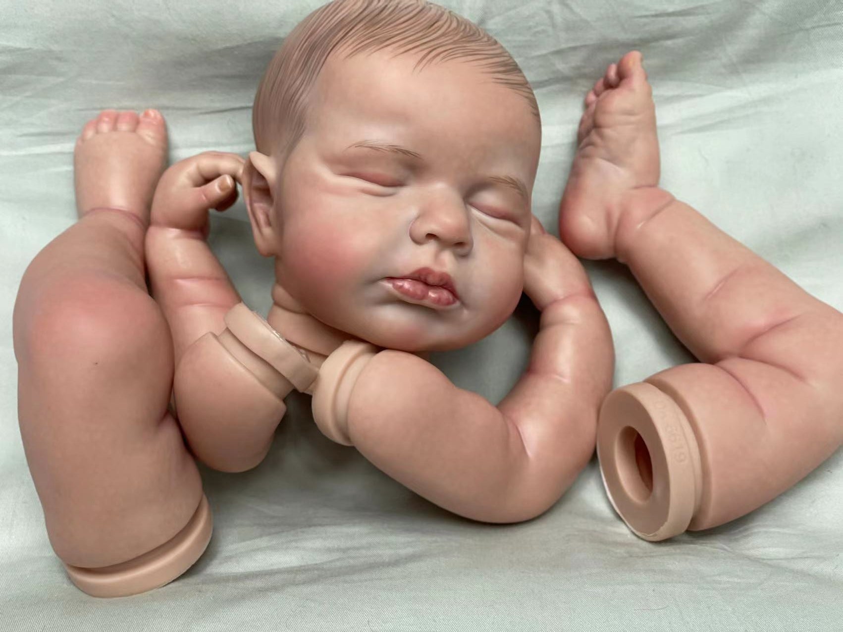 The kit is made of in a light skin coloured soft vinyl and includes head, full arms and full legs.