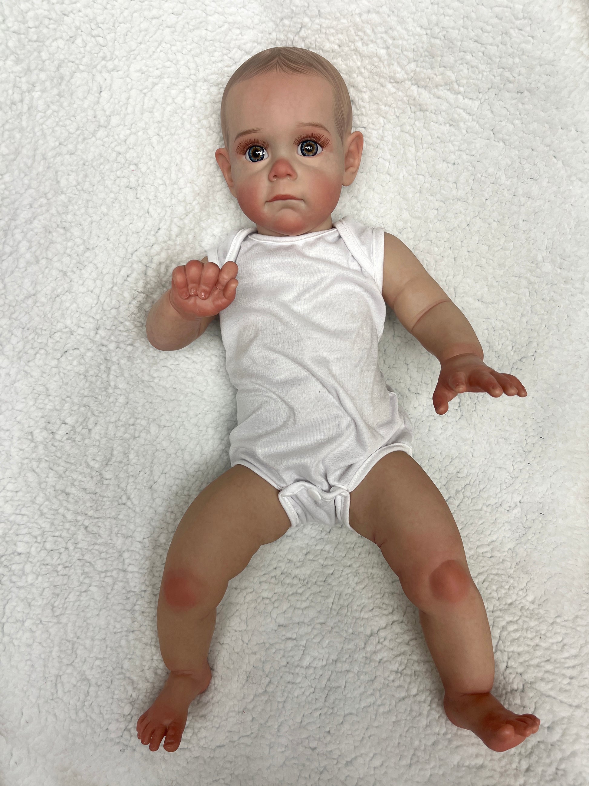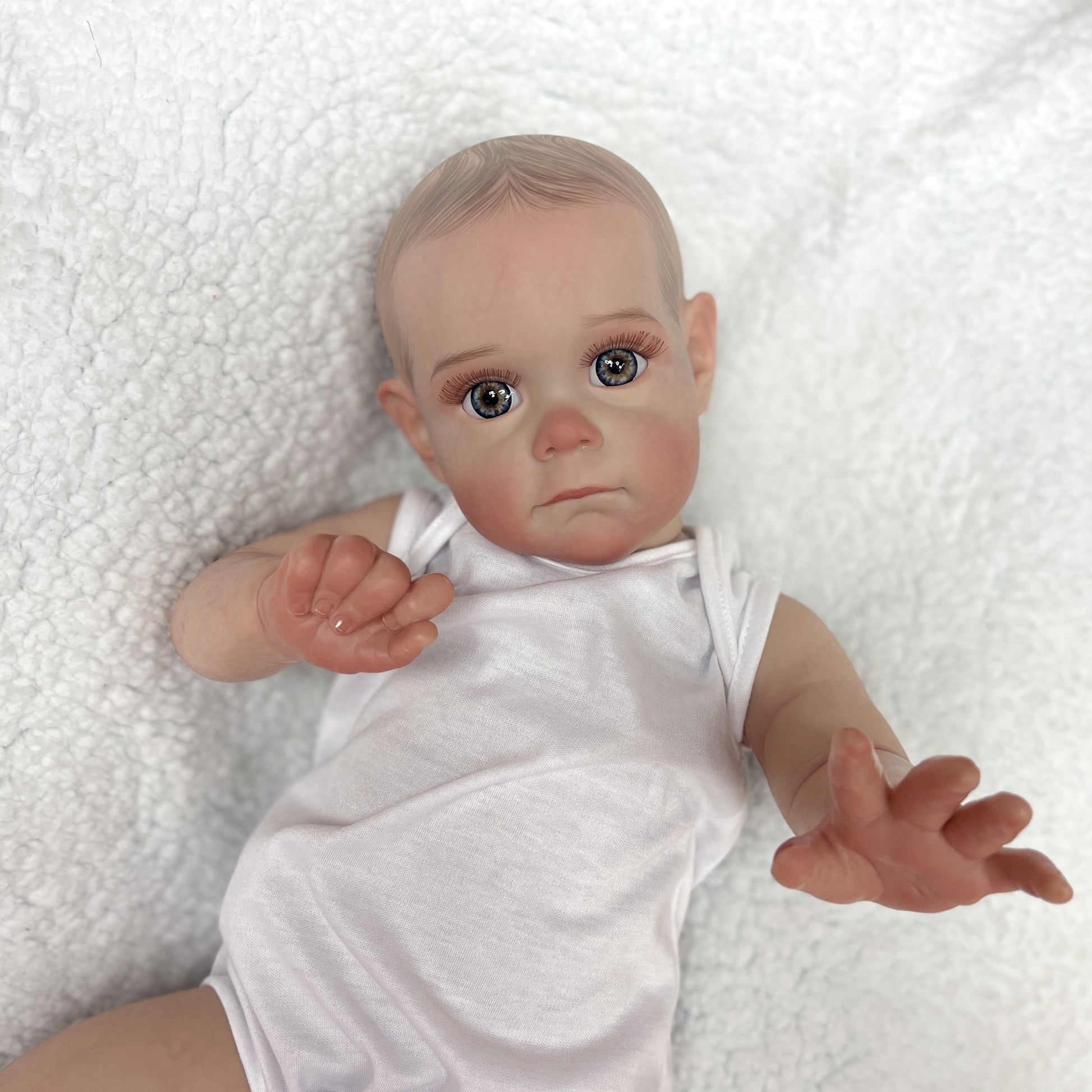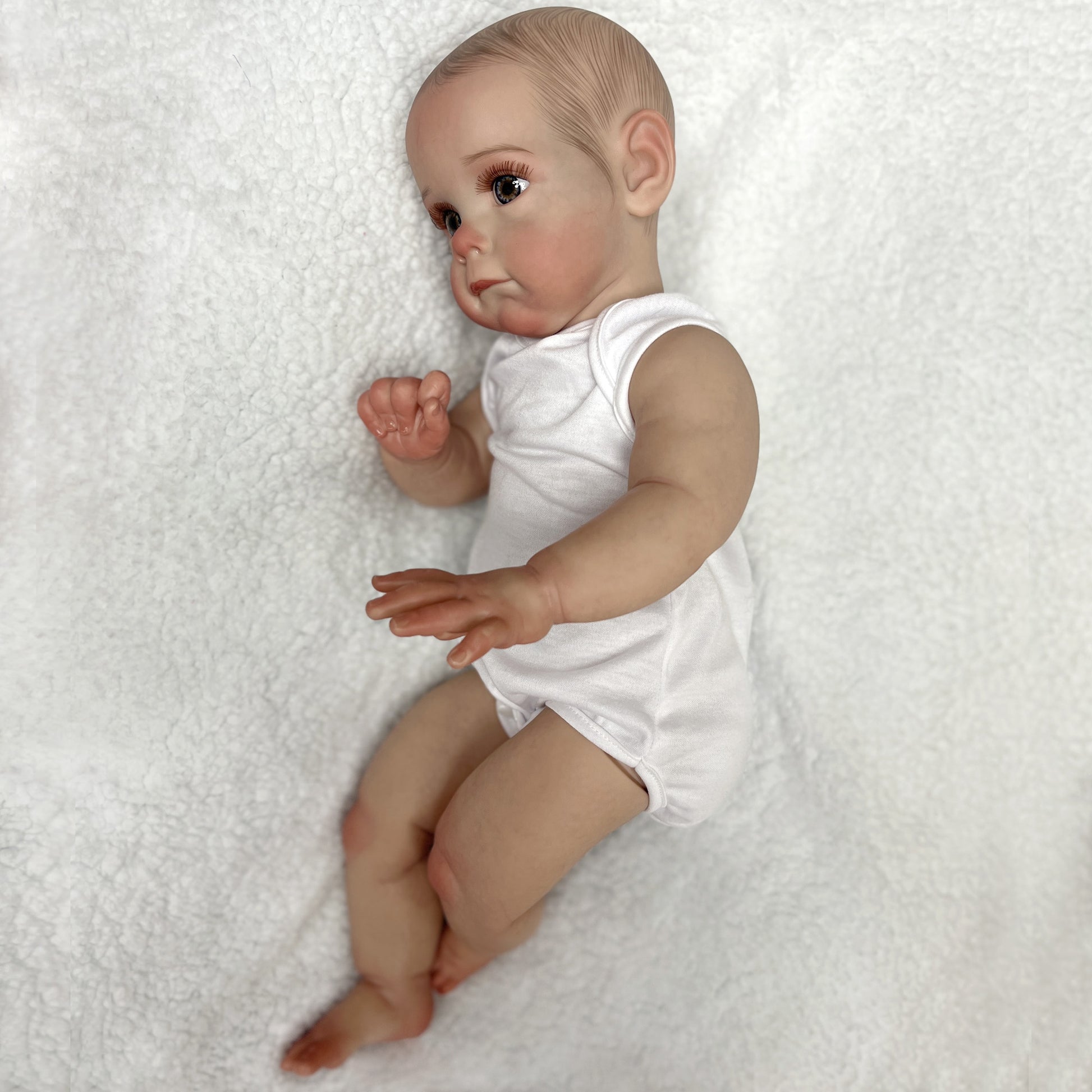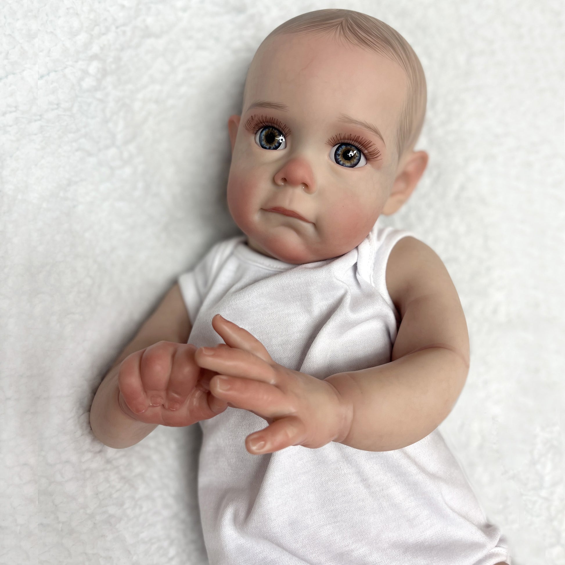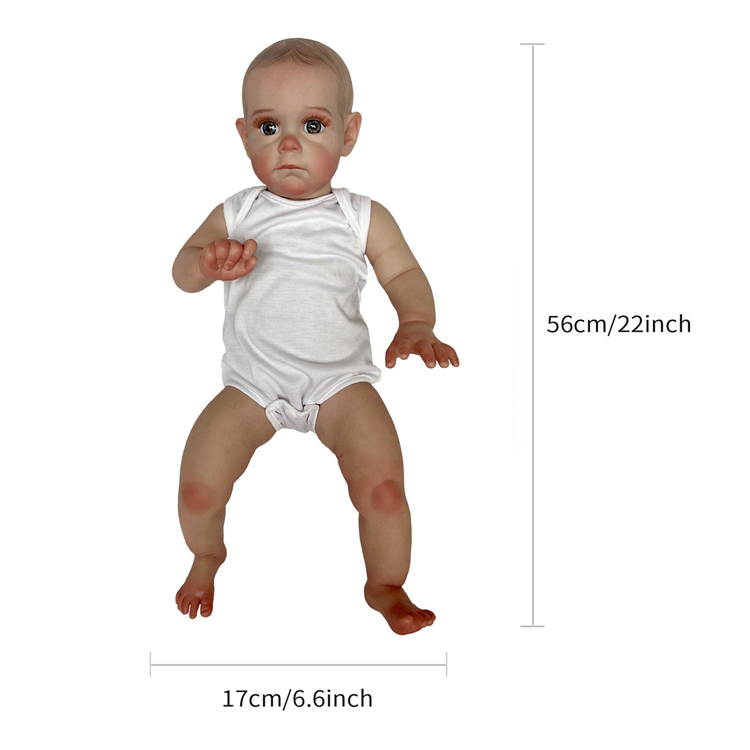 56cm/22Inch Doll, Artist Oil Painted Skin And Hair, Handmade Soft Silicone Vinyl Newborn Baby Dolls, Cuddly Open Eyes Lifelike Real Art Reborn Dolls Toy For Family, Gift