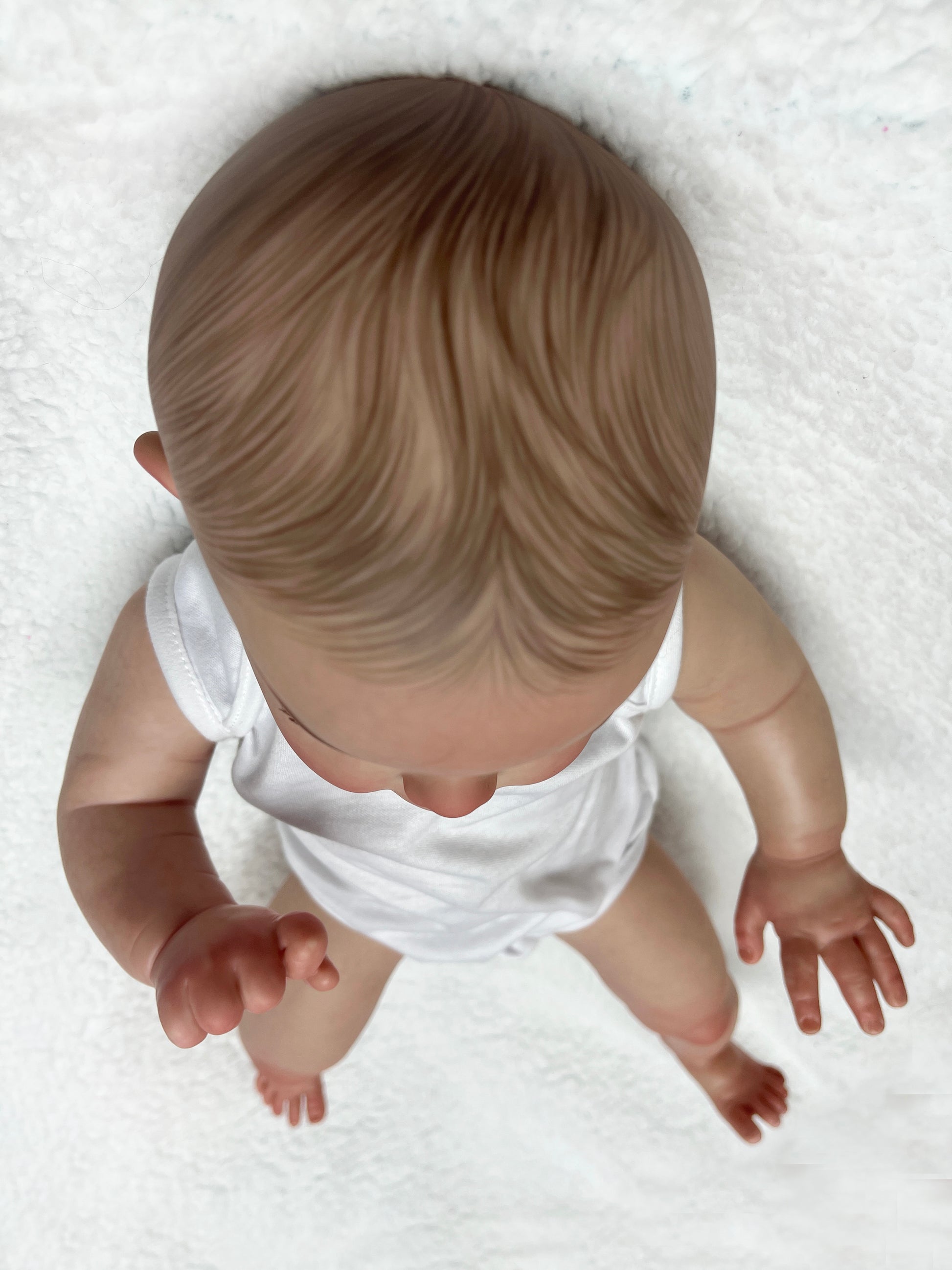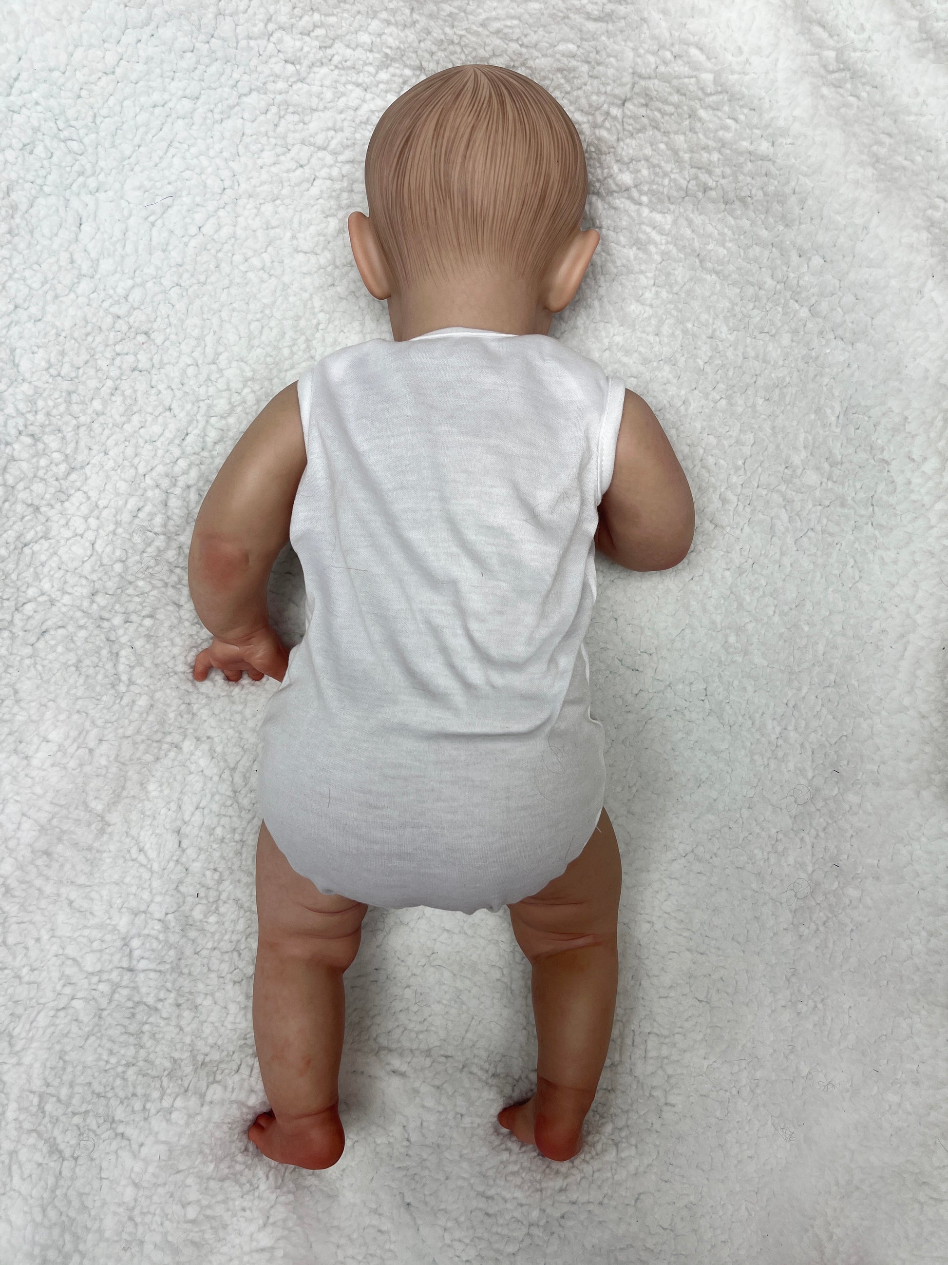 Baby size: Around 22 inches, 56cm. Due to different measurement methods, allowable error Weight: Doll Net weight is around 1.3KG. Hair:Painted Hair,It's very lifelike. Dress:The clothes will be the same as the picture. You can change it for the doll by yourself. Structure: soft cloth body, much more life and soft, very cute The main body is the cloth body and cannot be placed in water. The head and limbs are all made of vinyl. Made of imported soft vinyl material.
