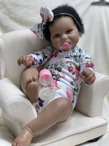 24inch 60cm Maddie Reborn Baby Doll Cloth body Git Toy Gift African Dark Skin