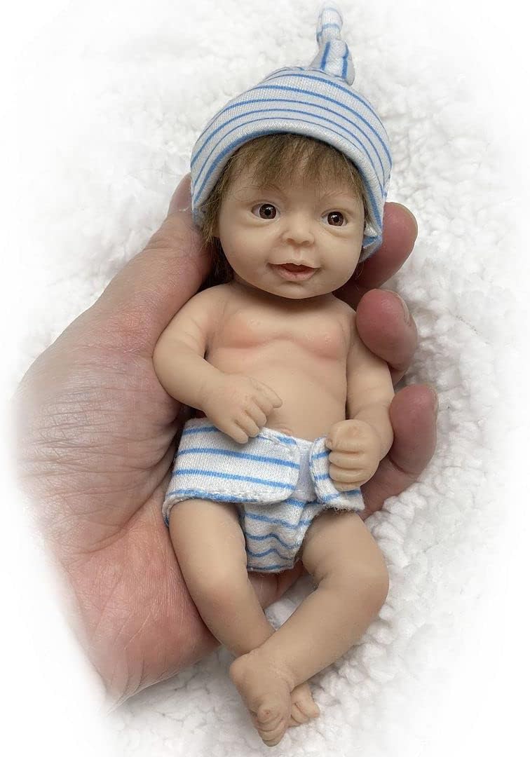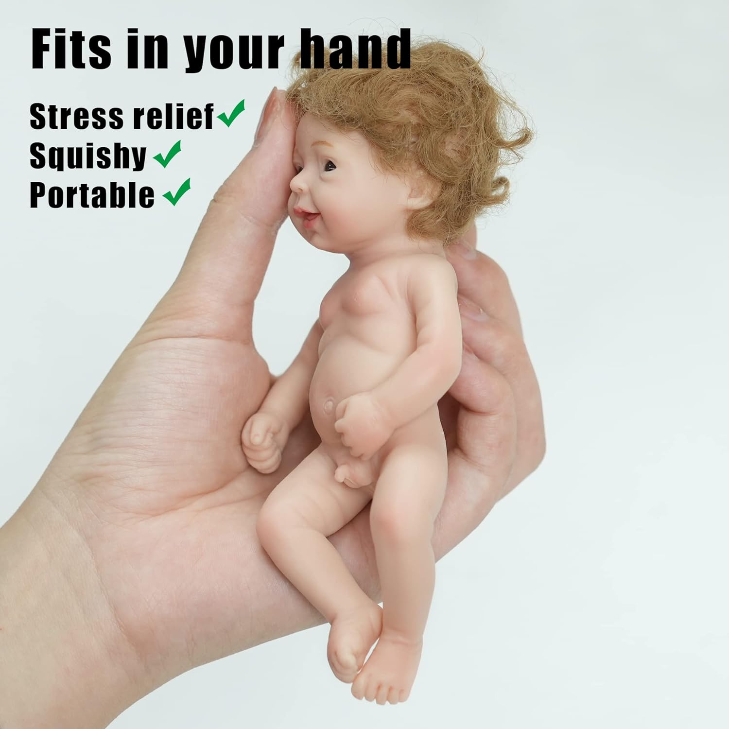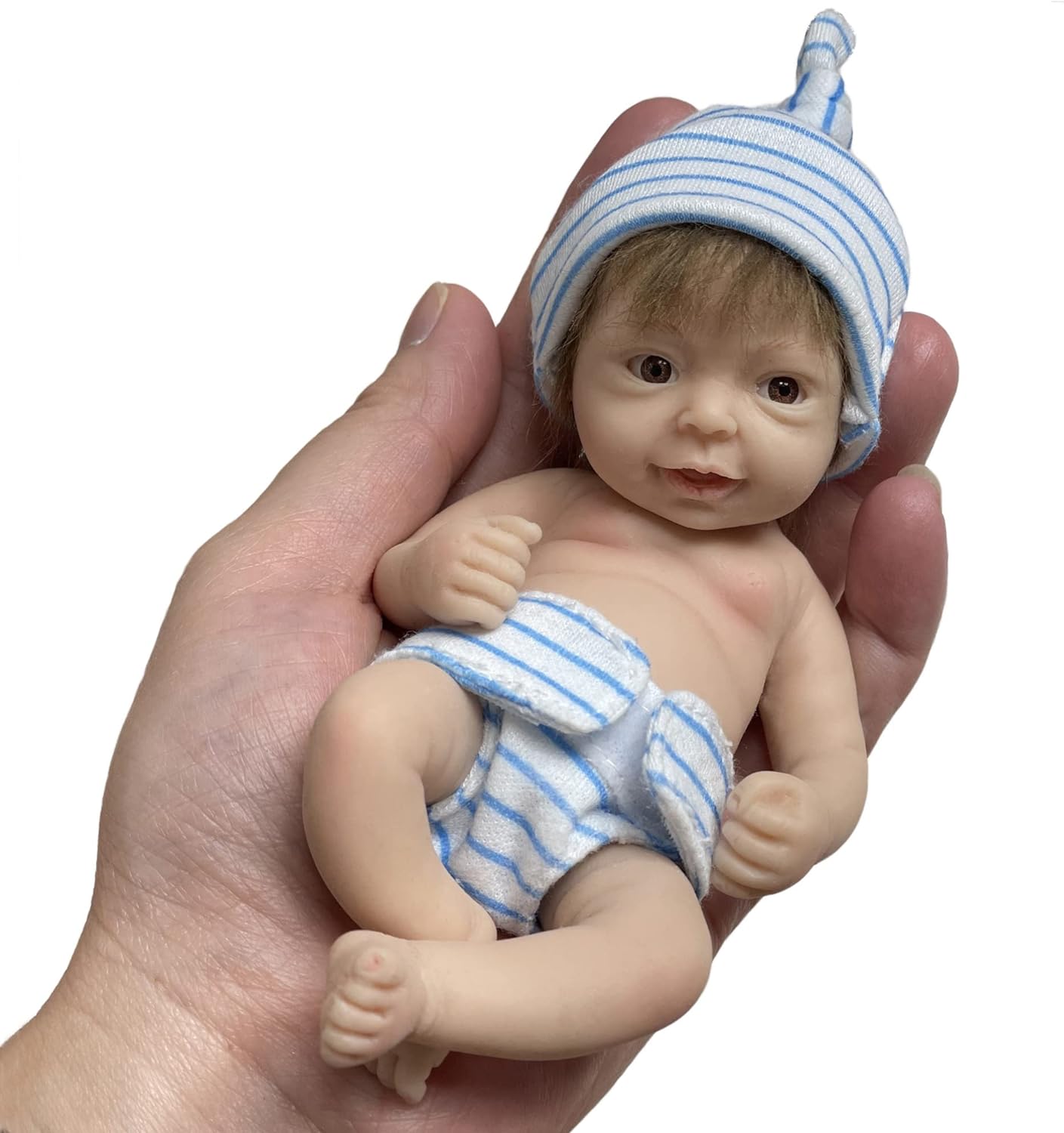 • FEATURES: This is a mini reborn baby doll, anatomically correct boy. Size: 5 - 6 inch from head to toe, weighs 4 OZs, palm-sized, mini and portable; Eyes: acrylic eyes, can't blink; Hair: hand-rooted curly hair; Washable, easy to care and maintain.